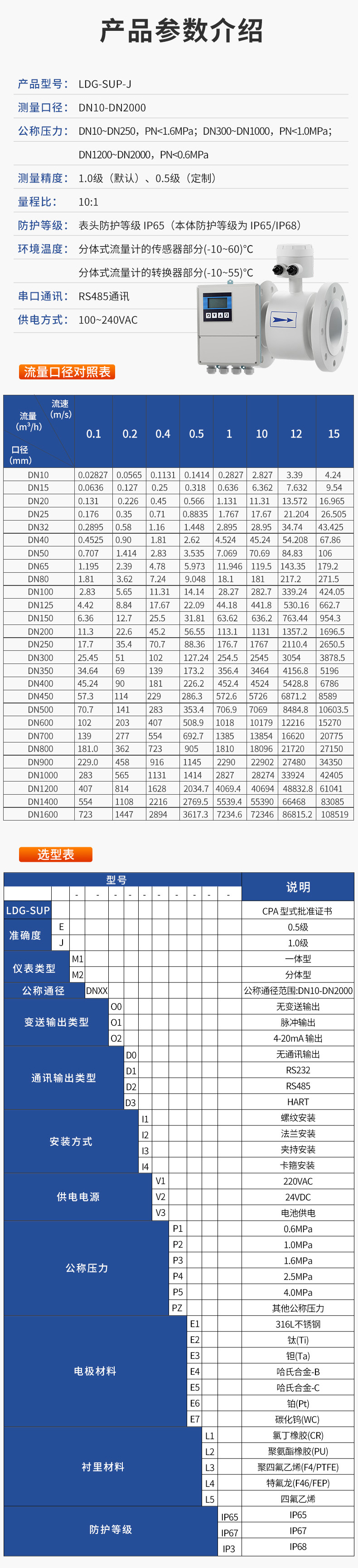 分体式电磁流量计-污水/农田灌溉不锈钢流量传感器