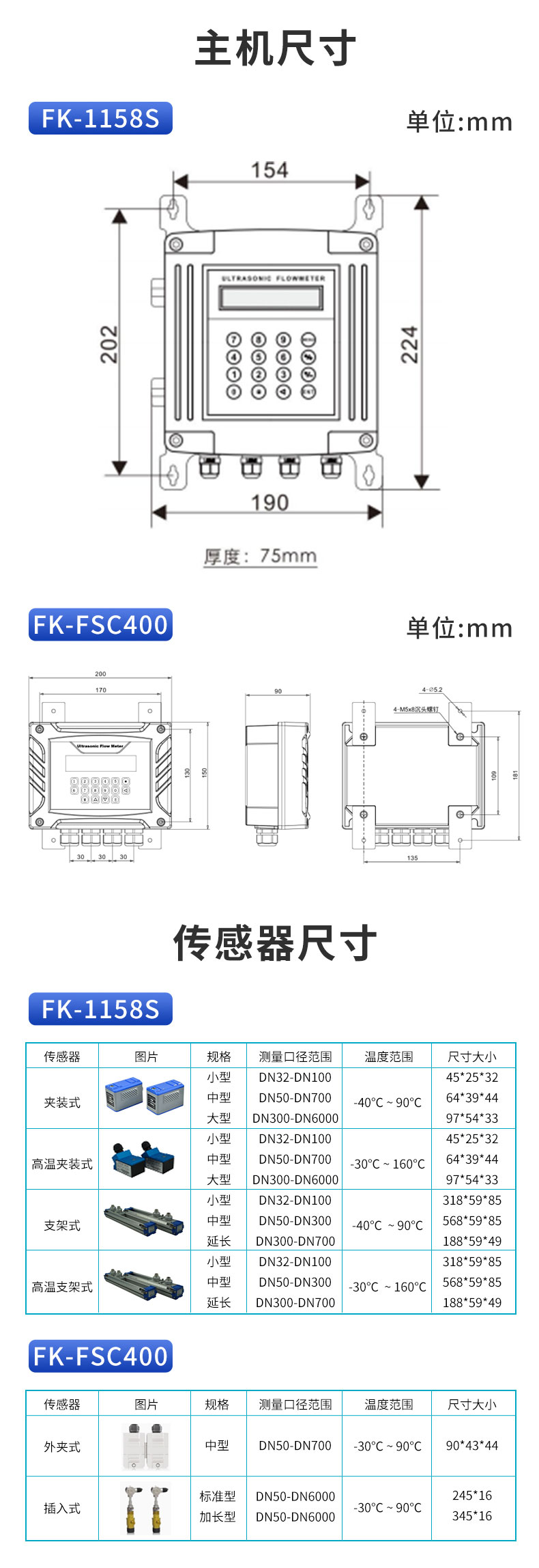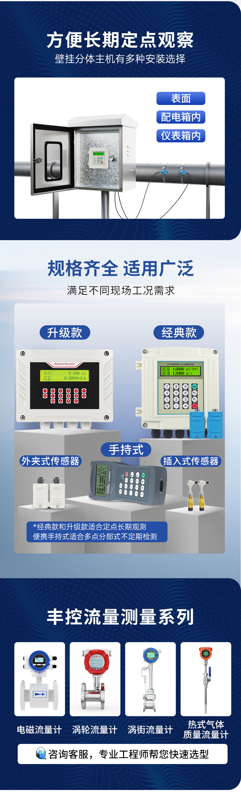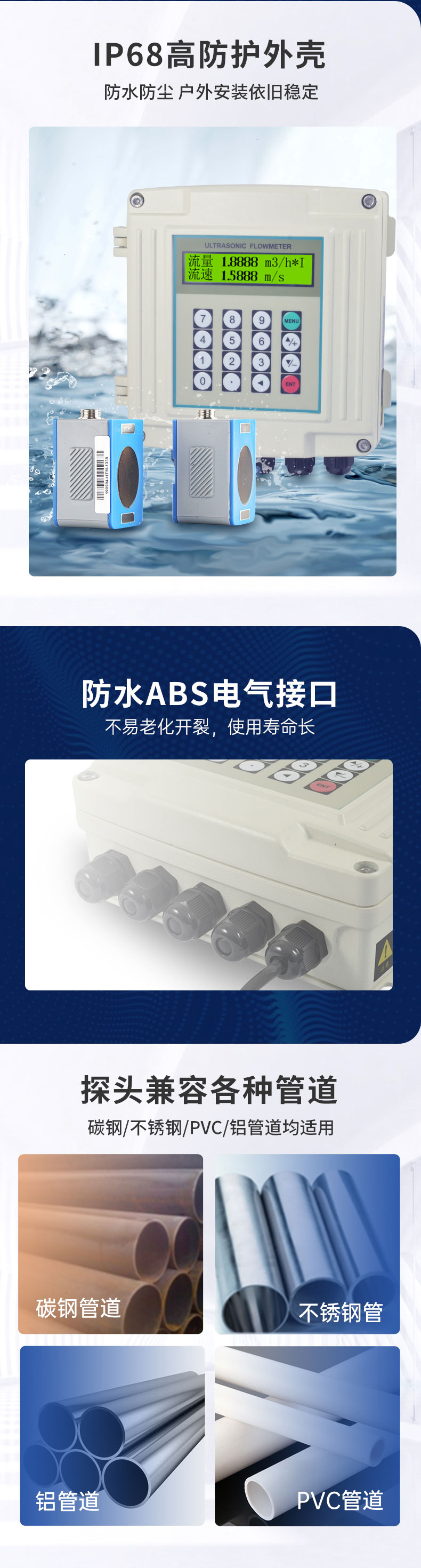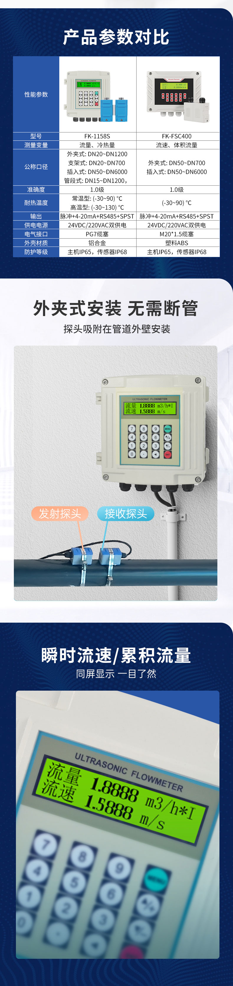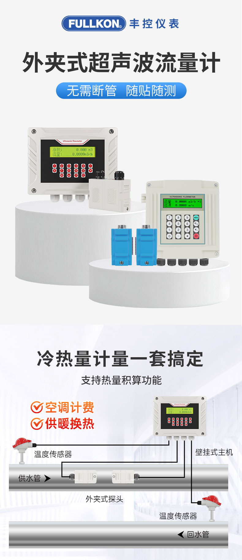 高精度超声波流量计壁挂管道流量计液体水插入外夹式冷热量传感器