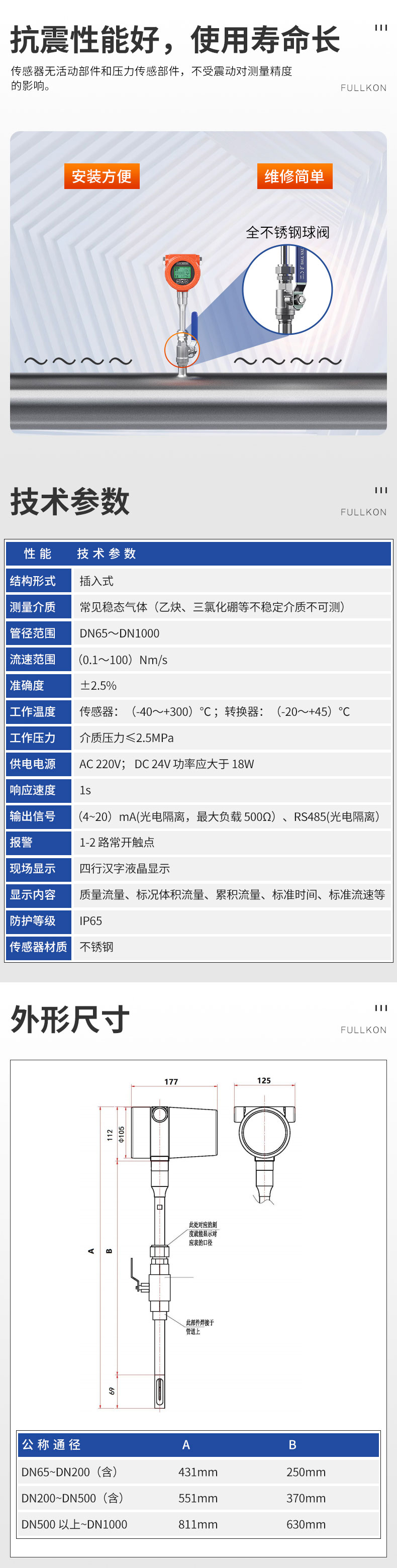 大口径插入式热式气体质量流量计