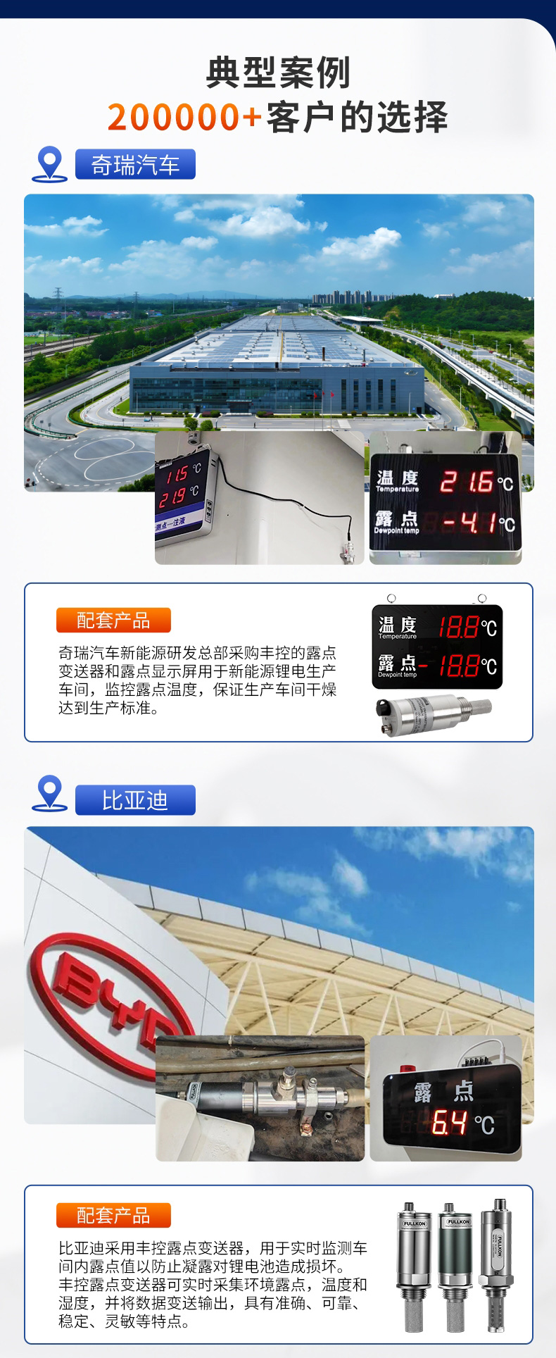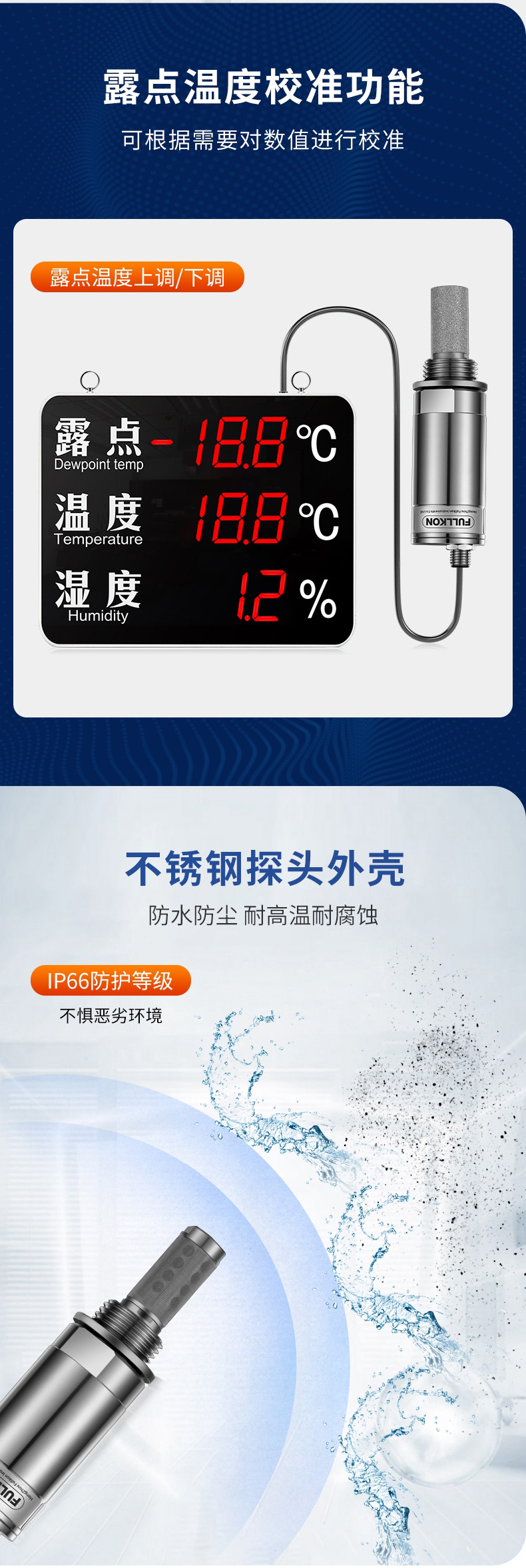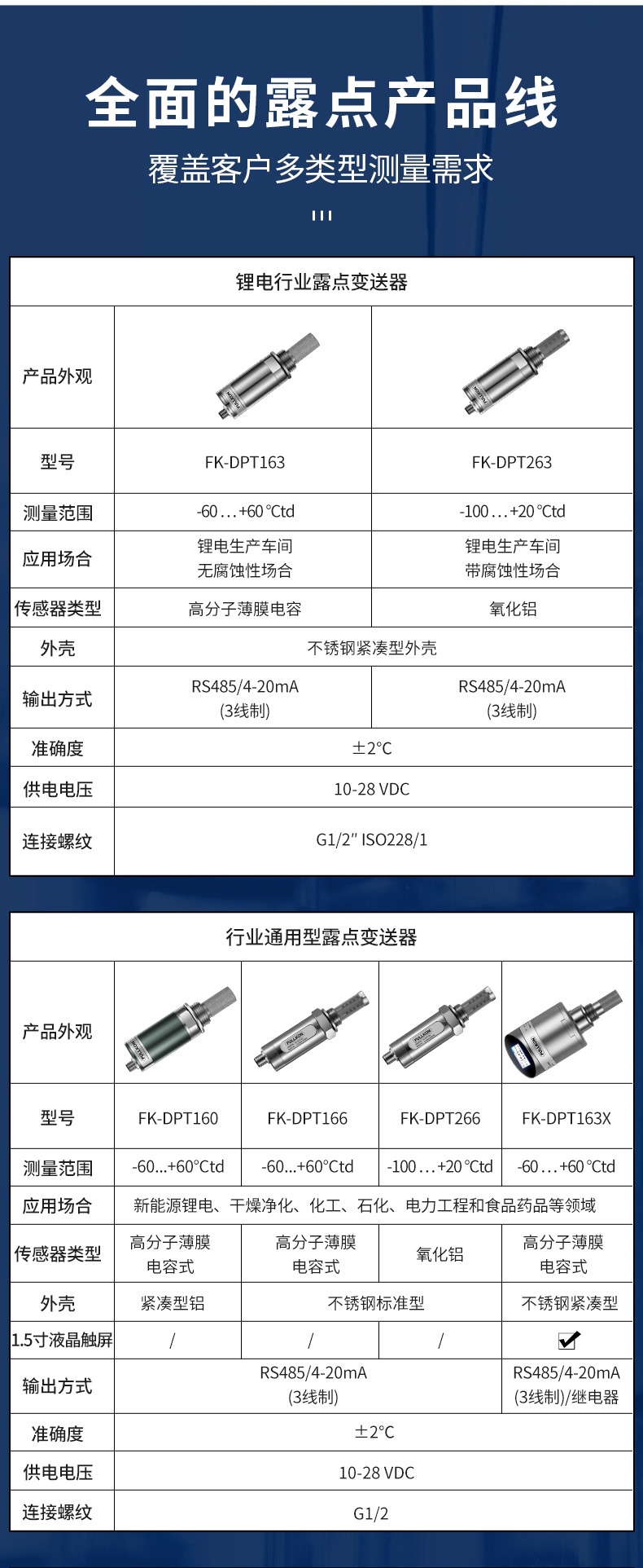 产品简介:丰控露点仪当测量介质的露点温度>-40°Ctd,高分子电容传感器对比于其他类型的传感器在该区间无论是精准度、响应速度还是长期稳定性均为最优,并且性价比最高革新的自校准电路设计,能自动补偿温度、污染、老化引起的电路漂移,提供长期可靠的高精度测量创新的温度补偿算法及出厂前多点温度的补偿校验,大大改善了传感器的温度漂移,保证了宽温度范围内的高精度测量