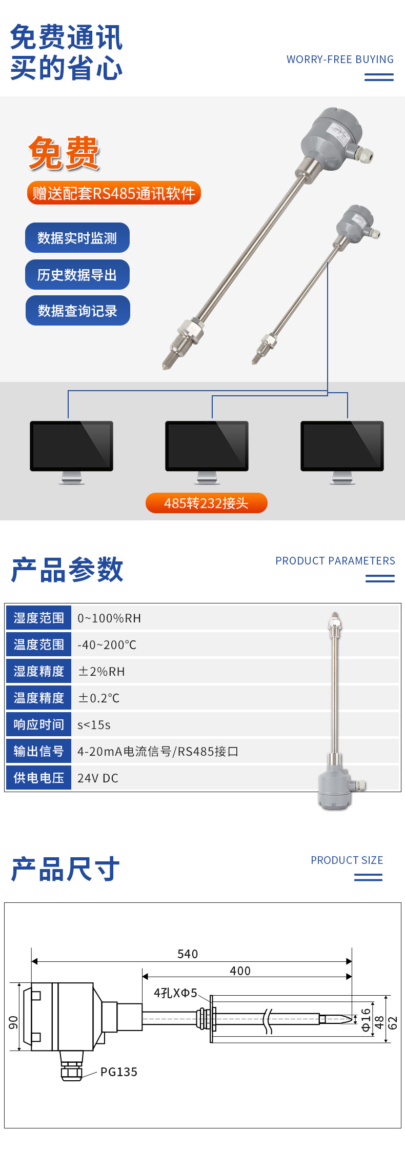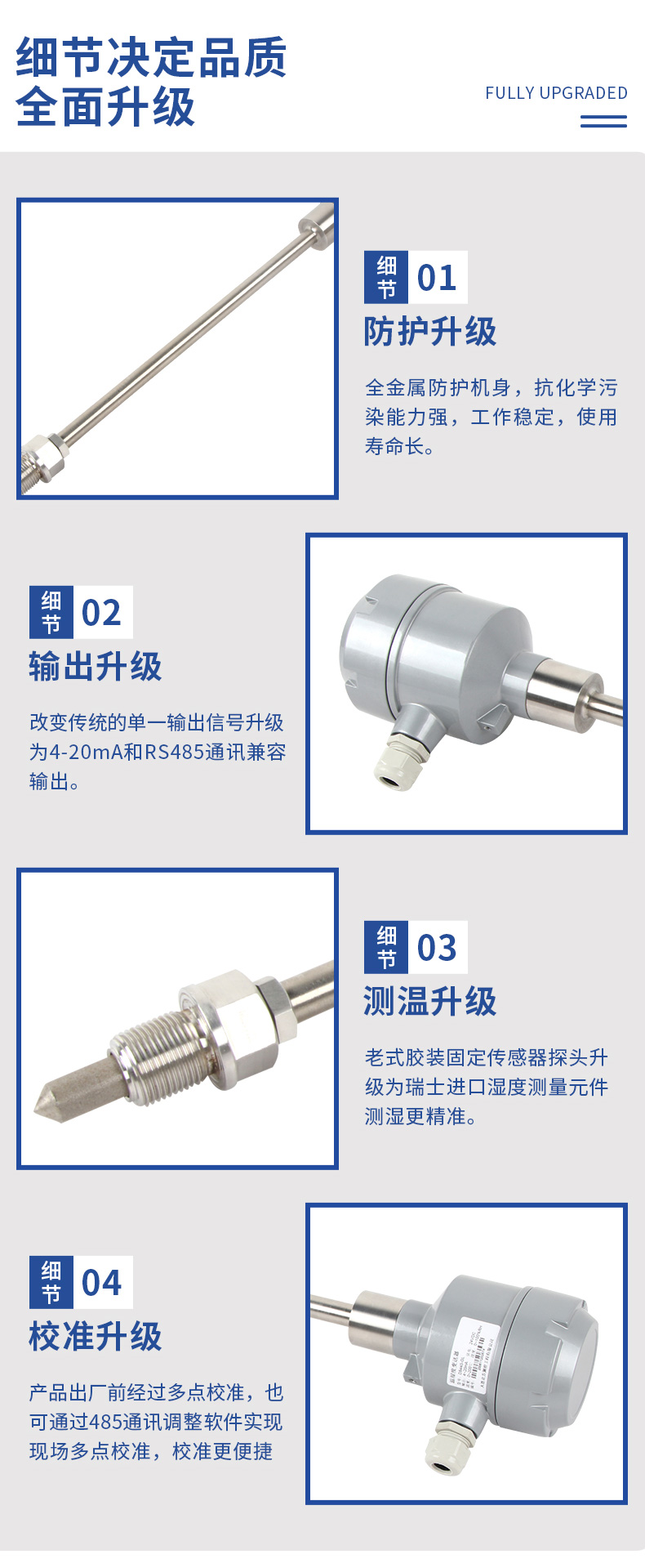产品简介:本产品是专为苛刻的工业应用而设计的温湿度变送器,变送器采用瑞士进口湿度测量元件,具有测量准确、适应温度范围广、抗化学污染能力强、工作稳定、使用寿命长等特点。 采用的湿度芯片具有较高的温度耐受能力,可以长时间工作在 200℃的高温环境中。传感器表面的特殊处理可使传感器在有化学污染的环境中仍能持续工作。是高温恶劣环境中工作的优良选择。