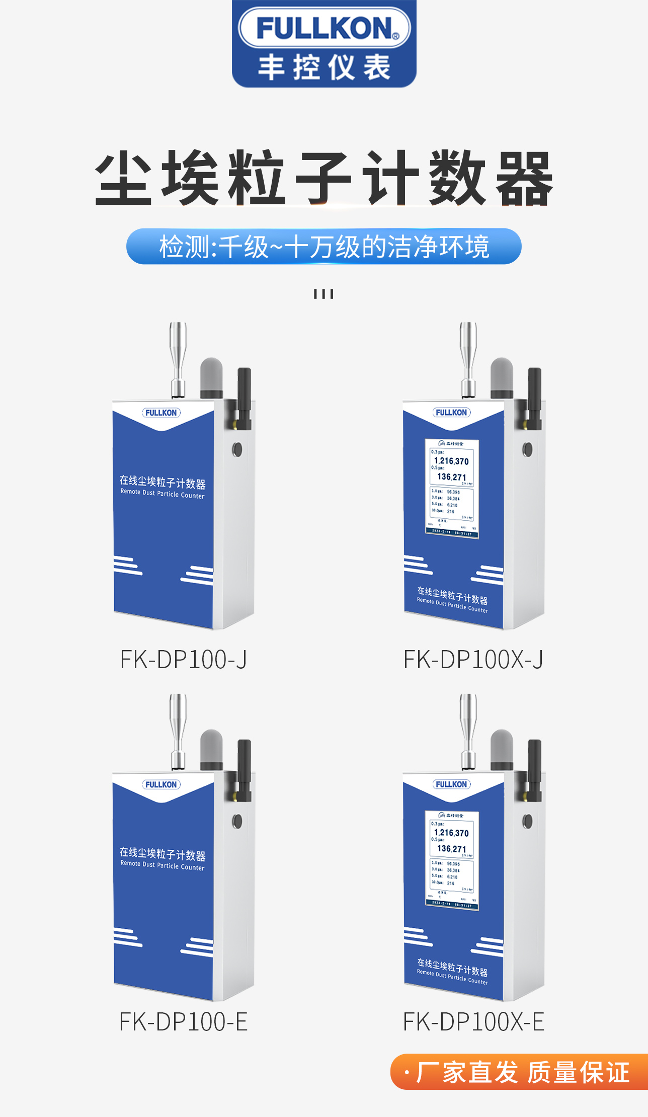 产品简介:在线粒子计数器采用光学散射原理,可精确检测并计算单位体积内空气中不同粒径的悬浮颗粒物的个数,内置丰控仪表独特的尘源智能识别模块,配以流量稳定的气泵,可同时输出 0.3um、0.5um、1.0um、2.5um、5.0um.10um 六个通道的颗粒数(默认单位 pcs/m,可切换 pcs/L、pcs/28.3L),示值误差满足 JF 1190 标准。