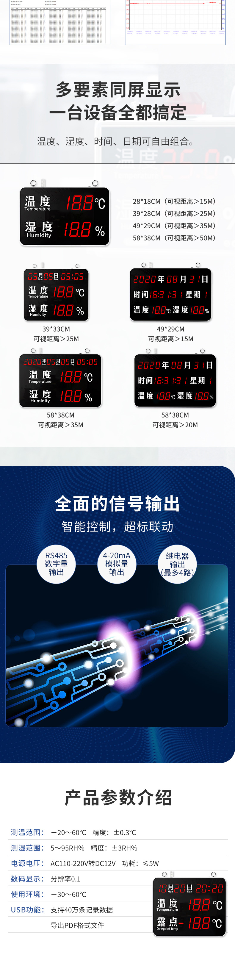 TH320高精度大屏高清温湿度监测控制仪