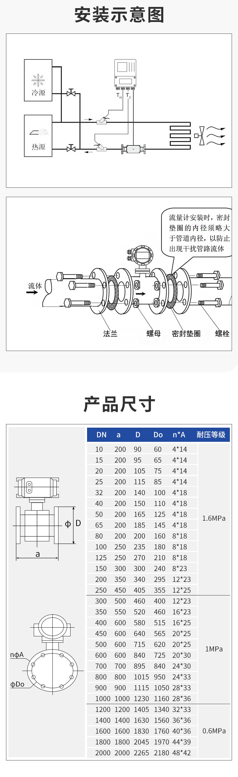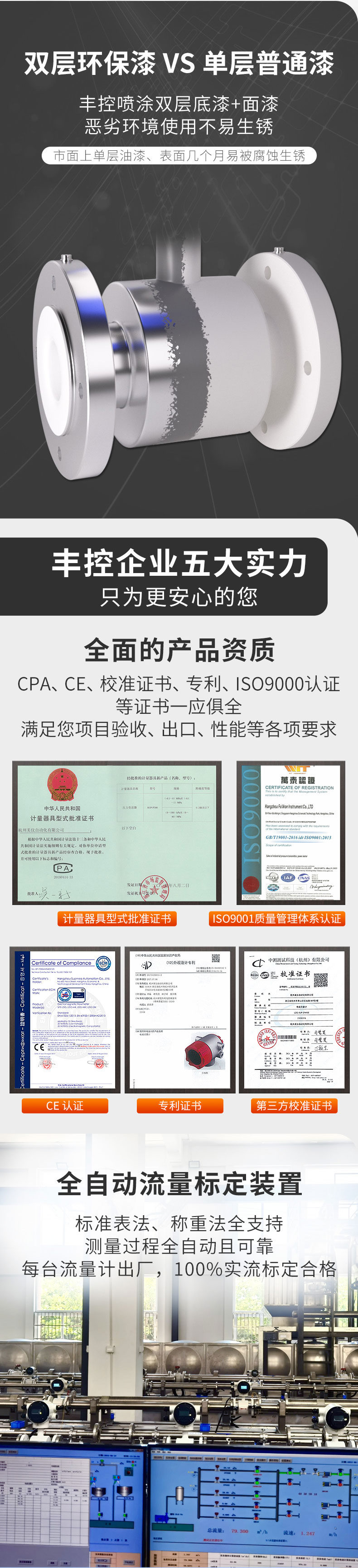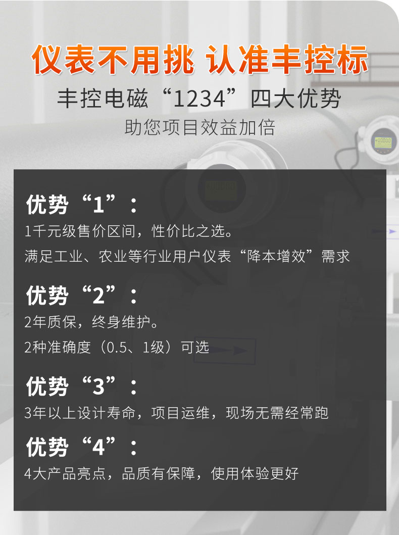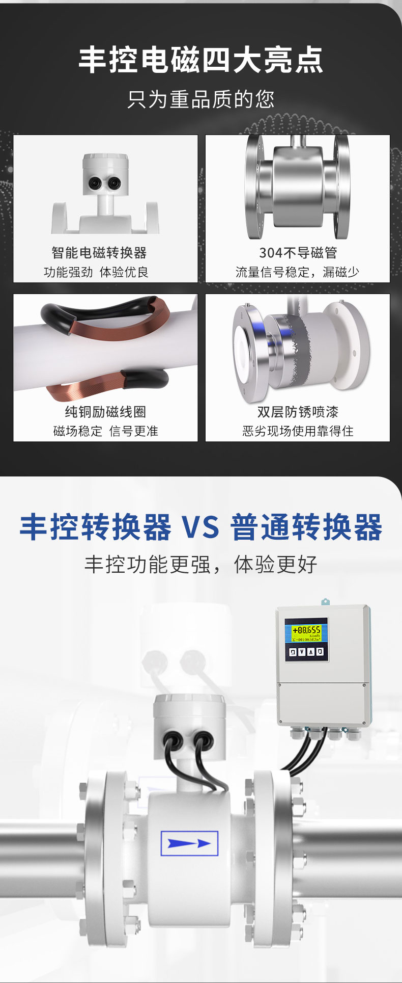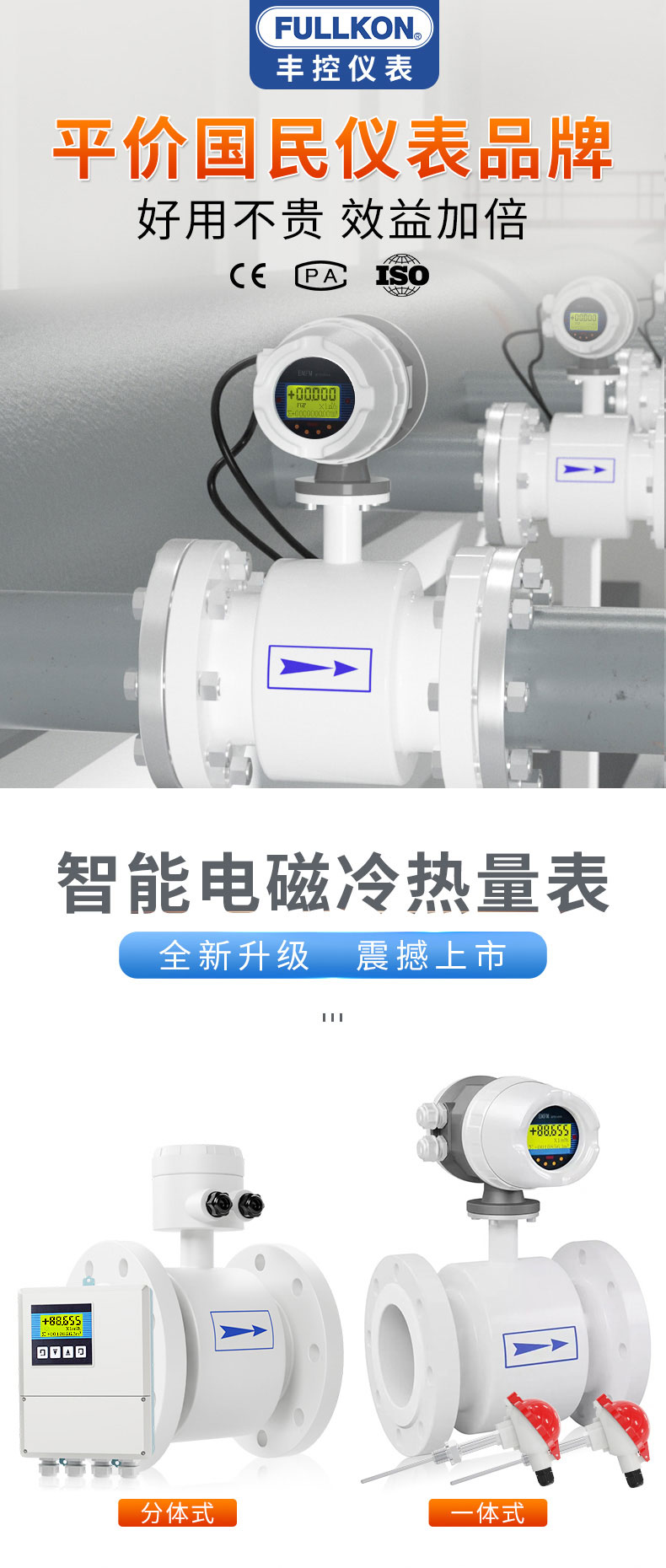 产品简介:电磁流量计仅适用测量具有导电性的液体或液固两相流体的瞬时流量,并具有流量累积功能。介质耐温:氯丁橡胶:(-10~70)℃ 聚氨酯橡胶:(-10~60)℃ PTFE/FEP:(-10~120)℃ PFA:(-10~180)℃