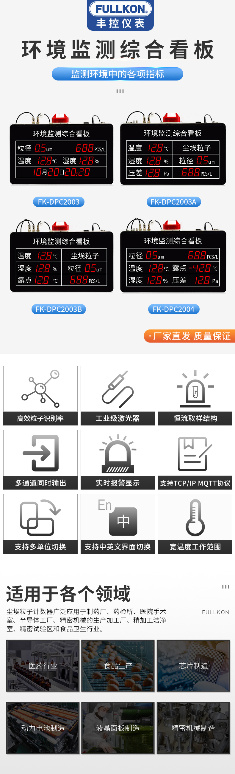 DPC系列锂电车间/药厂/半导体工厂环境监测看板