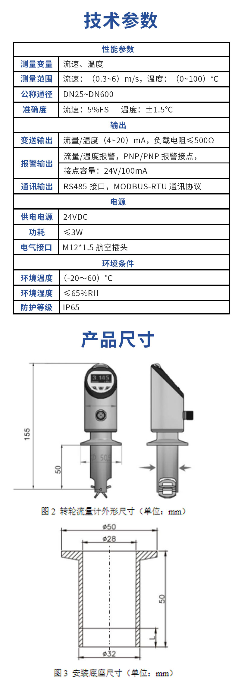 高精度插入式叶轮一体式传感器可测液体温度流量