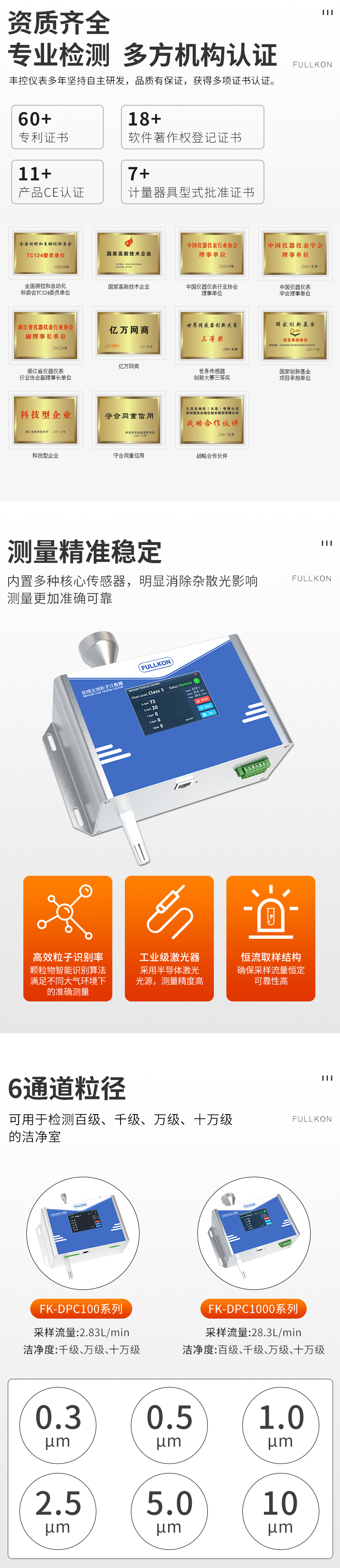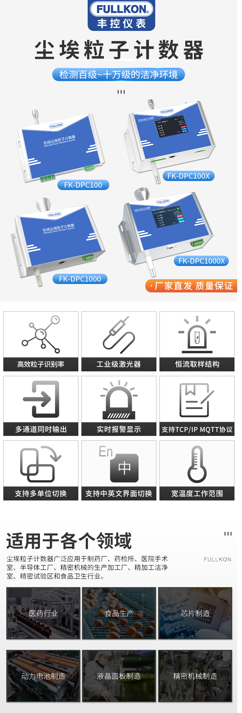 丰控在线式尘埃粒子计数器DPC1000X系列-28.3L/min数显型百级~十万级粒子检测仪