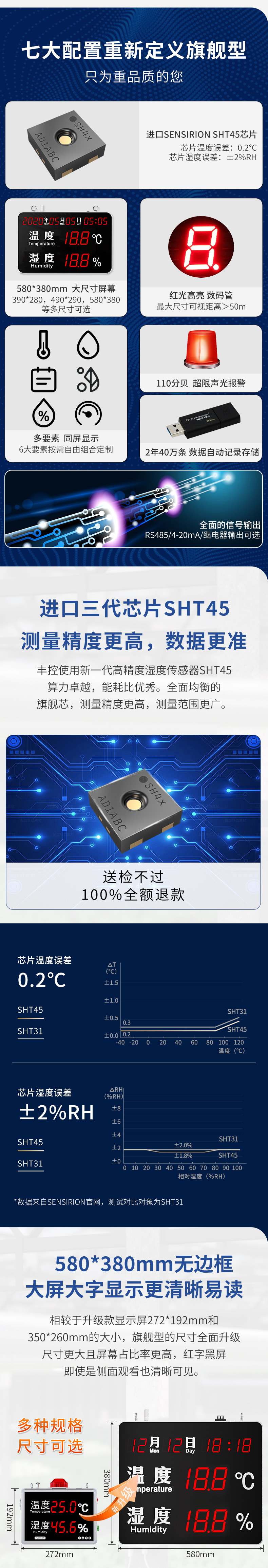 TH320高精度大屏高清温湿度监测控制仪